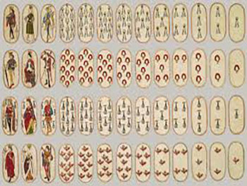 Karty sa najprv kreslili ručne, pričom rôzni autori používali štýly typické pre svoju krajinu a kultúru. Napriek tomu všetci používali ľahko rozpoznateľné symboly spojené s reálnymi objektmi. Napríklad prvé kartové sady neobsahovali kráľovnú, čo súviselo so skutočnosťou, že v tom čase bol svet kompletne ovládaný mužmi.